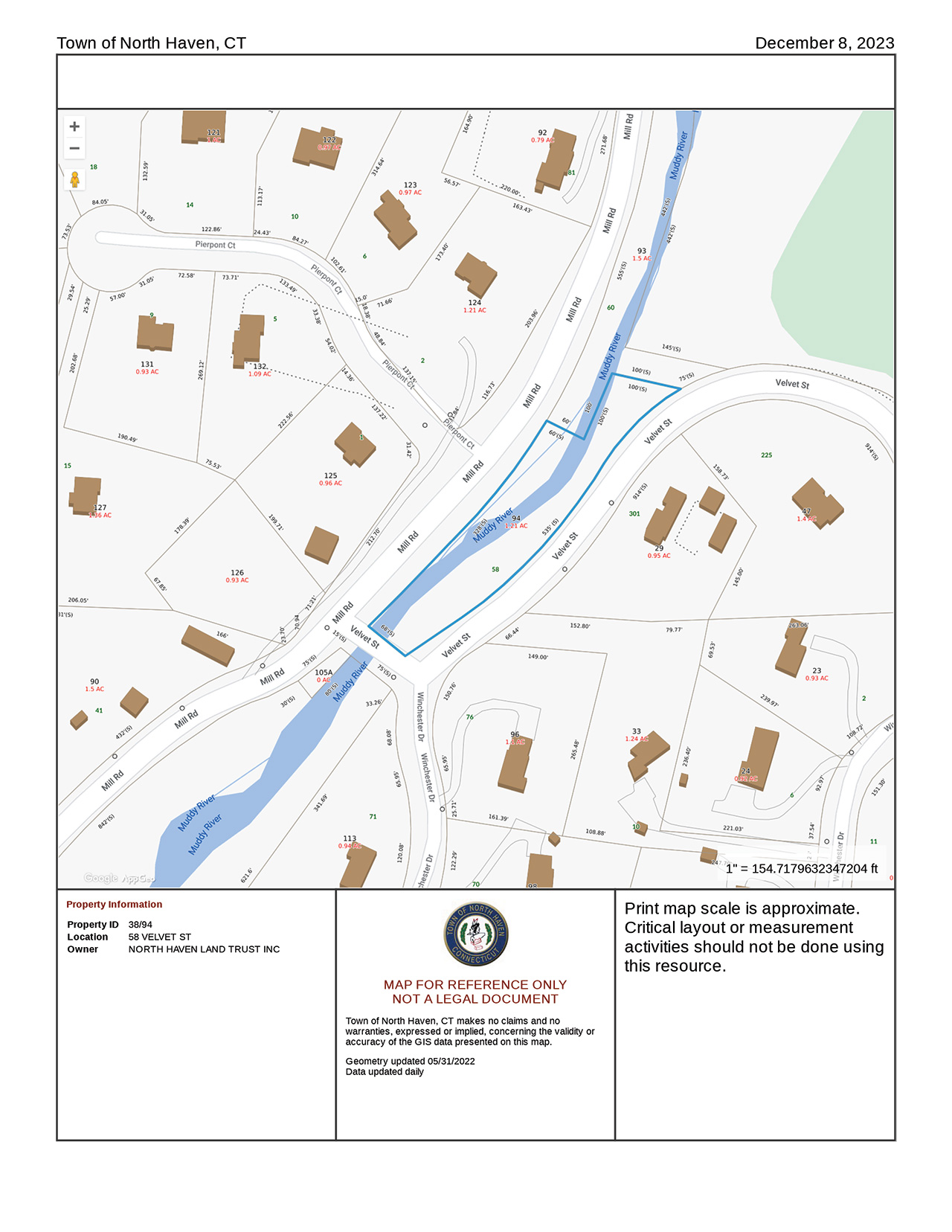 Located at the corner of Velvet Street and Mill Road in North Haven, this 1.21 acre property was the former location of the Potwine Mill. A granite block foundation of the old mill is all that remains along the river bank as a reminder of the property’s ancient history. Deeded to the North Haven Land Trust on January 8, 1981 by the Regional Water Authority, this property provides a scenic picture of the Muddy River in its many seasonal displays. While there is not an active trail access is possible down steep banks on both sides of the river.